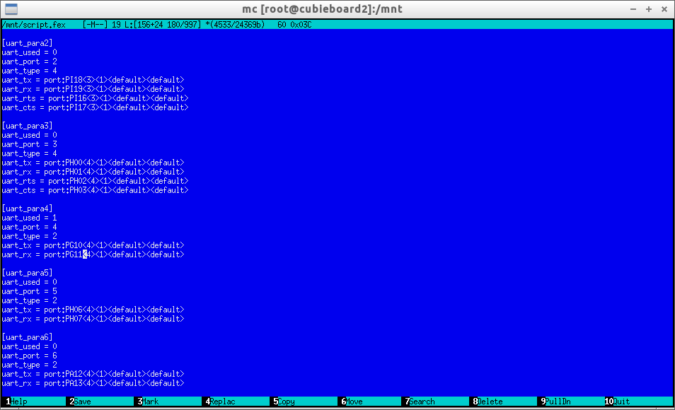 sudo mount /dev/nanda /mnt cd /mnt sudo bin2fex script.bin script.fex sudo vi script.fex