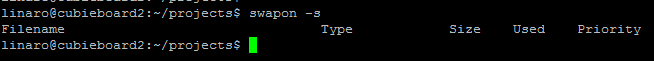 Lubuntu image for Cubieboard doesn’t contain dedicated swap. You can check it by gparted or simply by: