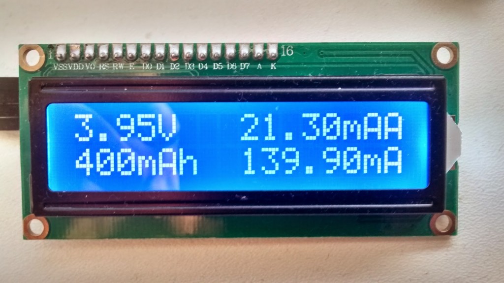 To check the battery charging efficiency I have tested the battery with the discharger and was able to get 361mAh out of the battery.