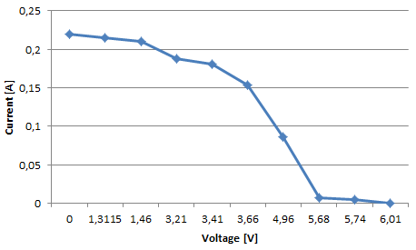 Maximum current was close to 250mA which I could get when I tried to find the best position directed to the sun with the voltage 5.3V (1.325W). If it’s cloudy the solar output is going significantly down (to 20mA with 4.5V = 0.09 W).