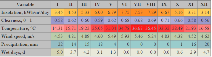 For short comparison: Doha, Kuwait 3 to 7 hours a day of good solar energy in average.