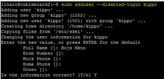 This will create a user called ‘kippo’ with no rights to login (like via SSH). A home directory will be created for him: /home/kippo/.