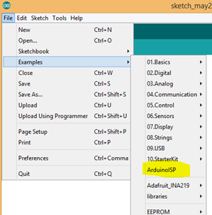 Using an Arduino board as an AVR ISP (In-System Programmer)