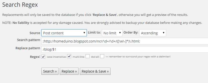 As you can see, I do not use dates in my URL and I have /blob/ prefix in my blog URI. The good thing is that you can firstly only Search before the final Replace & Save.