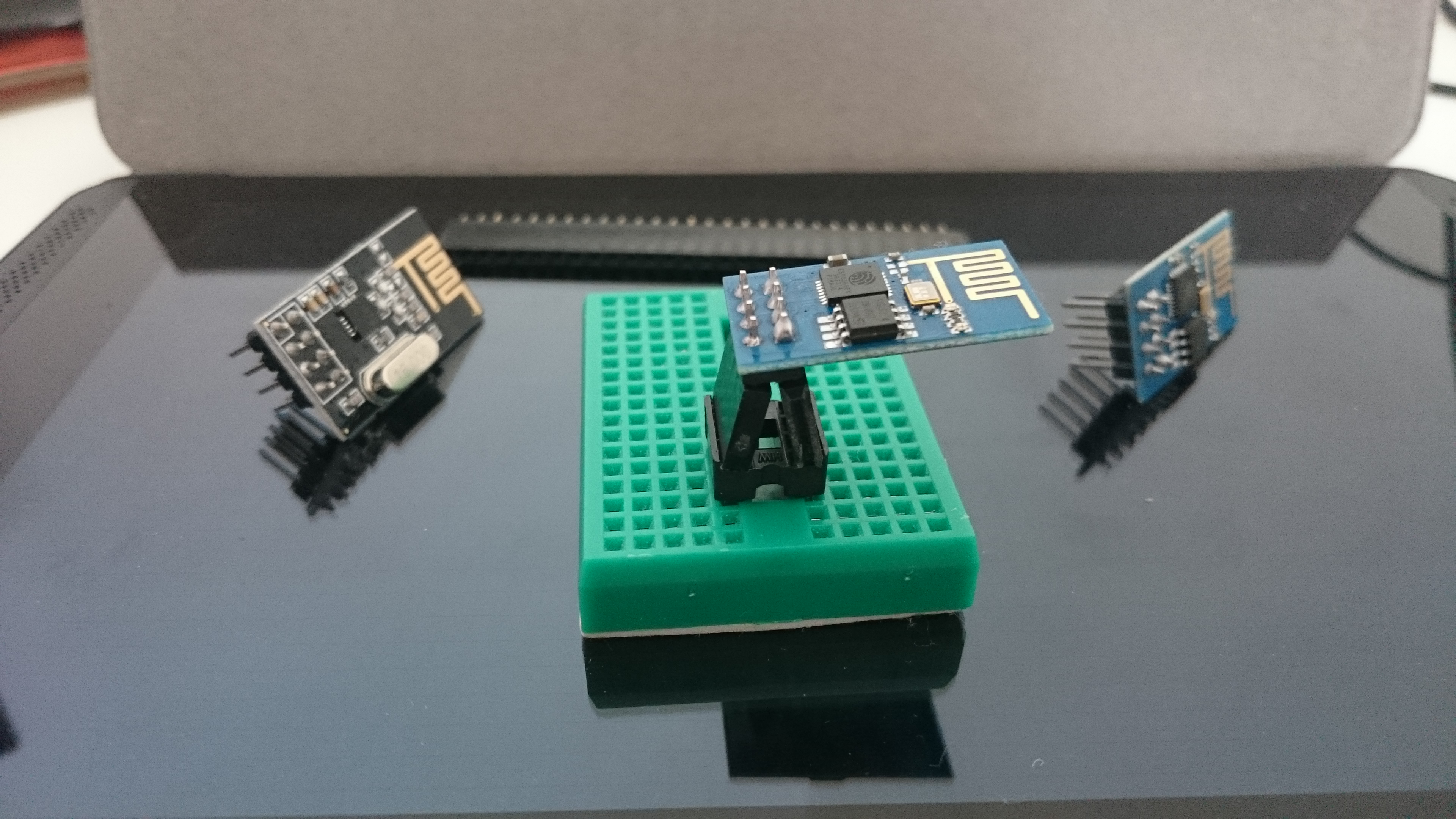 You can find several breadboard adapters for ESP8266 WiFi module or nRF24L01+ RF transceiver and also several DIY manuals how to create your own, but I decided to use my new WiFi WSP8266 and NRD24L01 as soon as I got them, so I used only breadboards female headers to start my home projects.