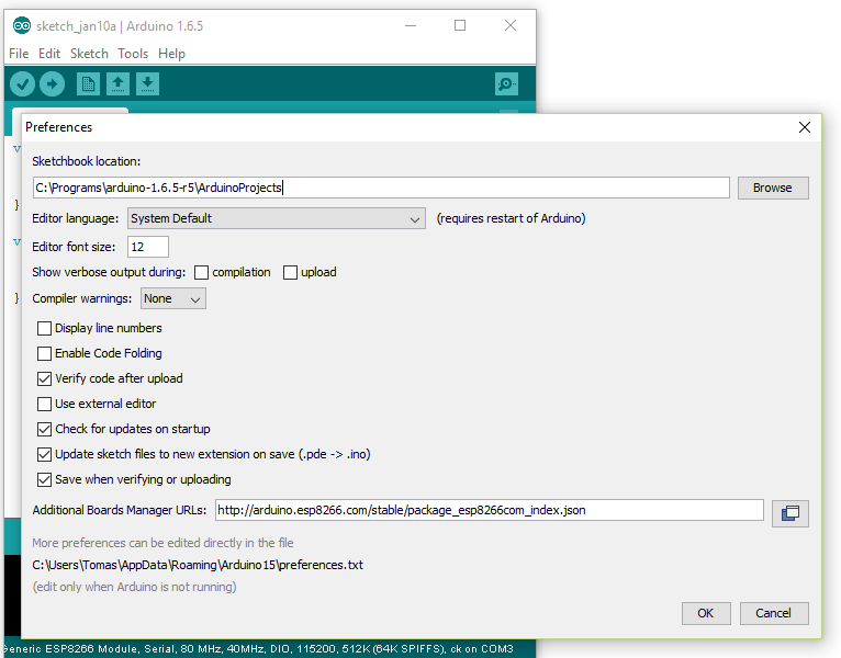 - Start Arduino and open Preferences window.