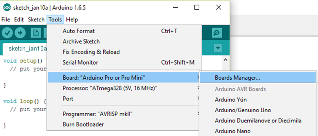 - Open Boards Manager from Tools > Board menu and install esp8266 platform (takes a while)