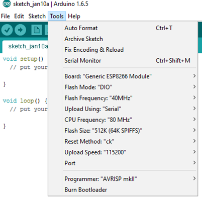 - Select your ESP8266 board from Tools > Board menu after installation.